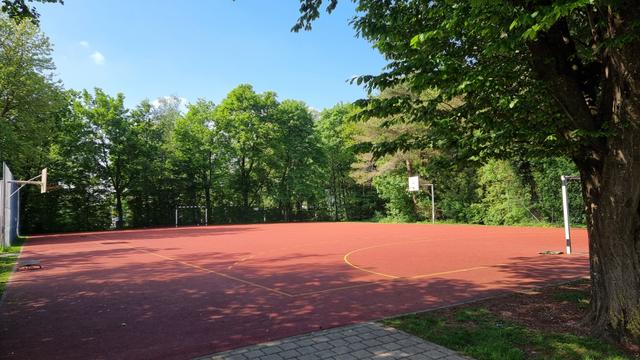 Eine Besonderheit unserer Einrichtung ist die sehr großzügige Außenspielanlage mit einem eigenen Sandkasten, Schaukel und Kletterturm. Zudem stehen uns ein Hartplatz mit Basketballkorb, eine große Grünfläche mit Fußballtoren und eine Hügellandschaft zur Verfügung.